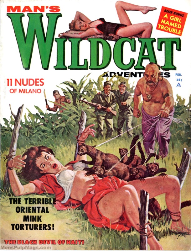 A third subgenre features stories and artwork in which Nazis, “Commies” (usually Chinese, Korean or Vietnamese Communists), Arabs, American Indians or tribal “natives” of various countries used animals to torment scantily-clad damsels or hapless male captives.
