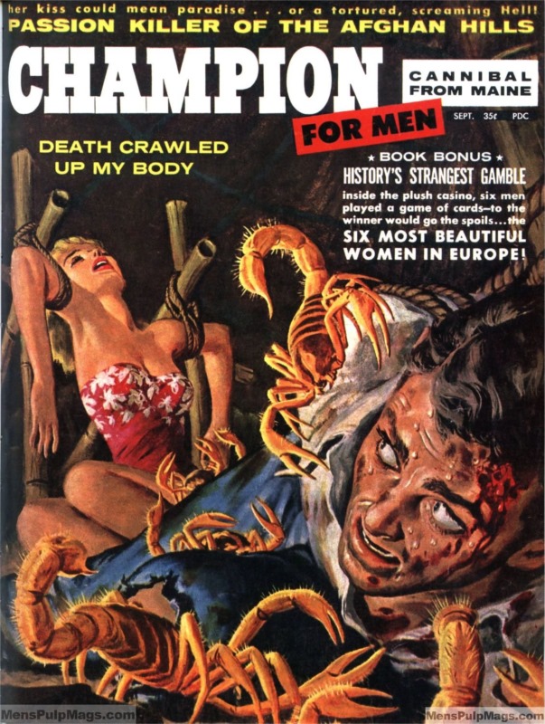In the realm of vintage periodicals, this torture-by-critter subgenre is virtually unique to men’s pulp adventure magazines.