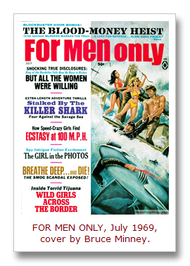 At first, Bruce worked almost entirely for Magazine Management, publisher of many of the top men’s adventure magazines, such as ACTION FOR MEN, COMPLETE MAN, FOR MEN ONLY, MALE, MAN’S WORLD, MEN, MEN IN ACTION, STAG and TRUE ACTION.