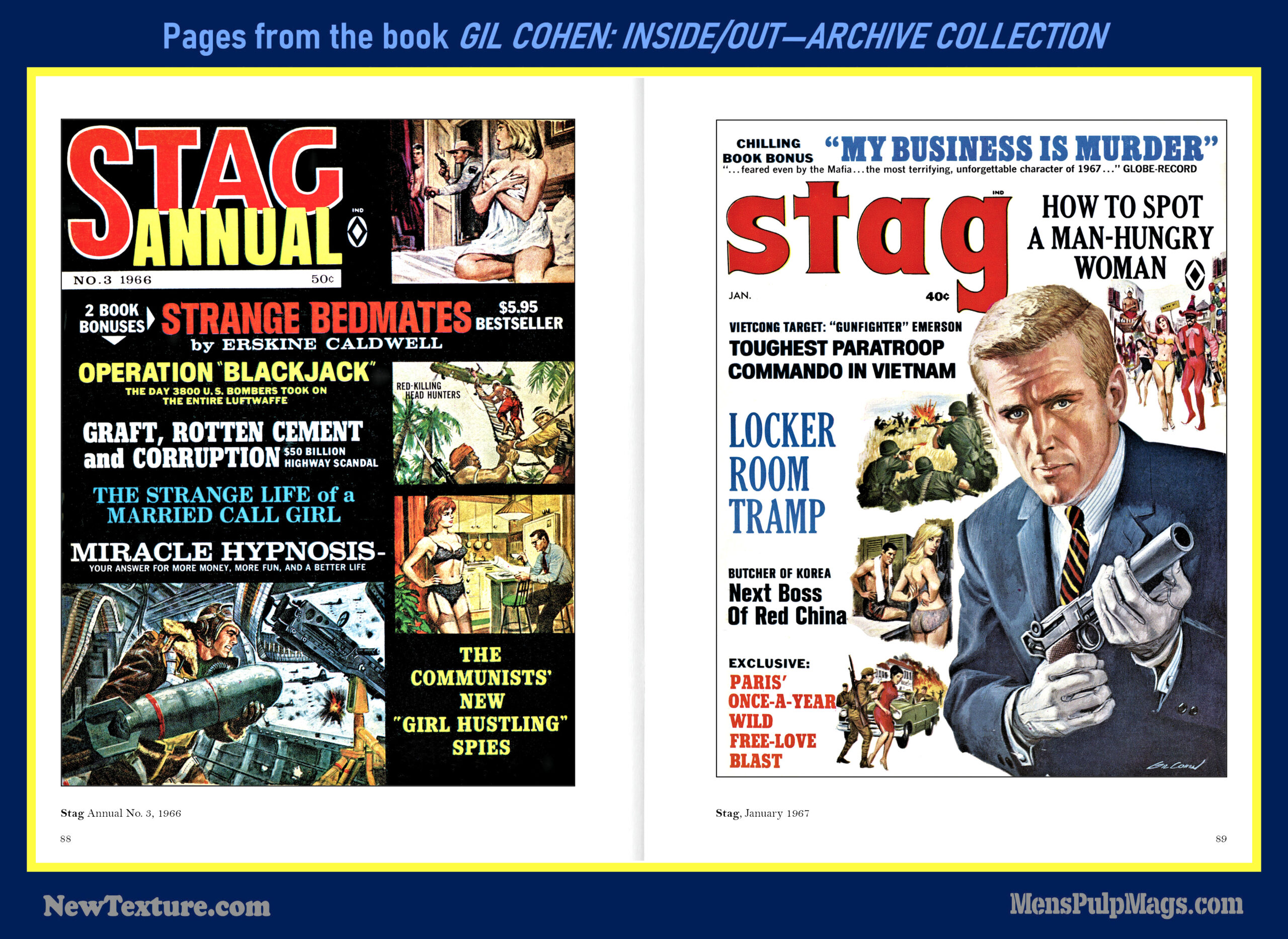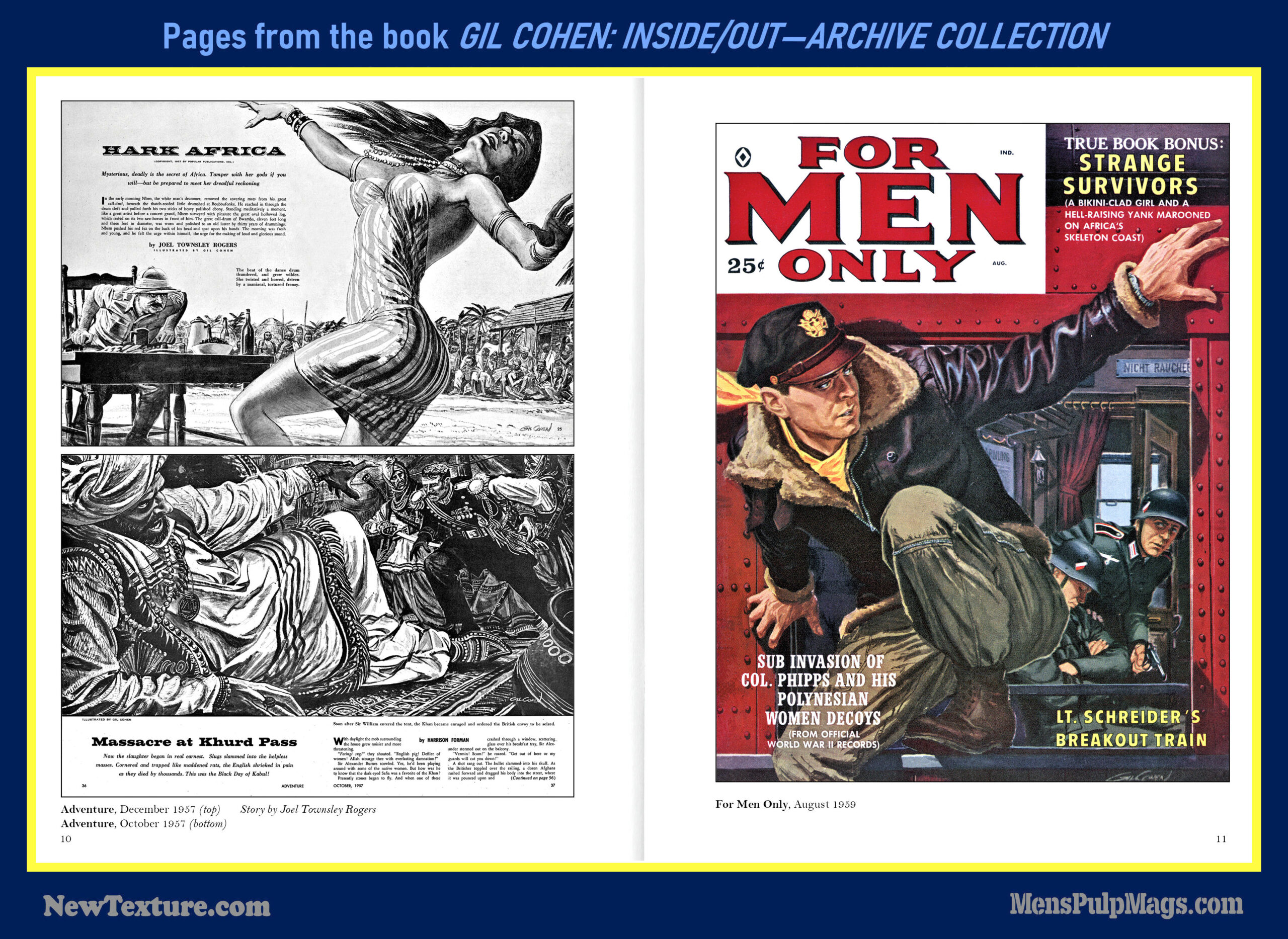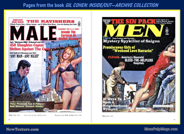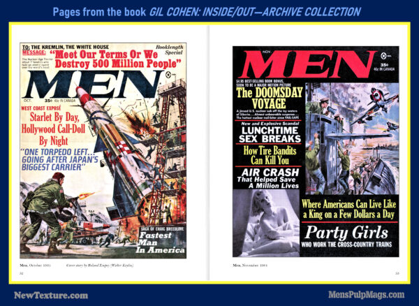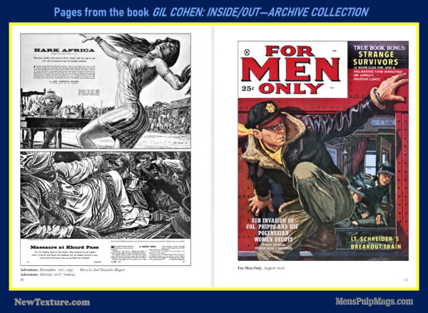 GIL COHEN: INSIDE/OUT—THE ARCHIVE COLLECTION, a deluxe, full-color hardcover, is the first book in a planned four-volume series that will showcase the classic men’s adventure magazine covers and interior illustrations created by artist Gil Cohen during the 1950s, 1960s, and 1970s.