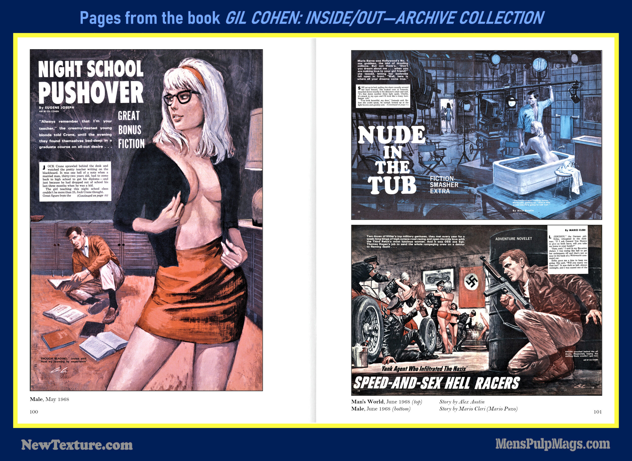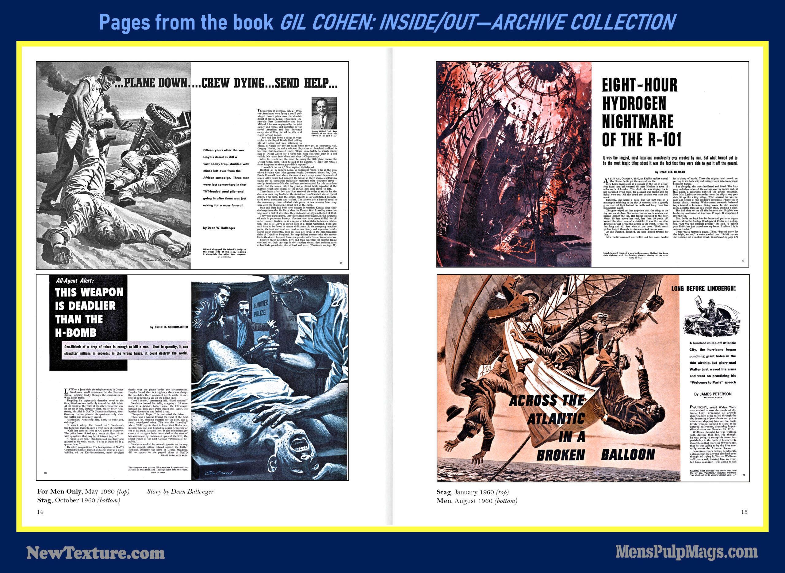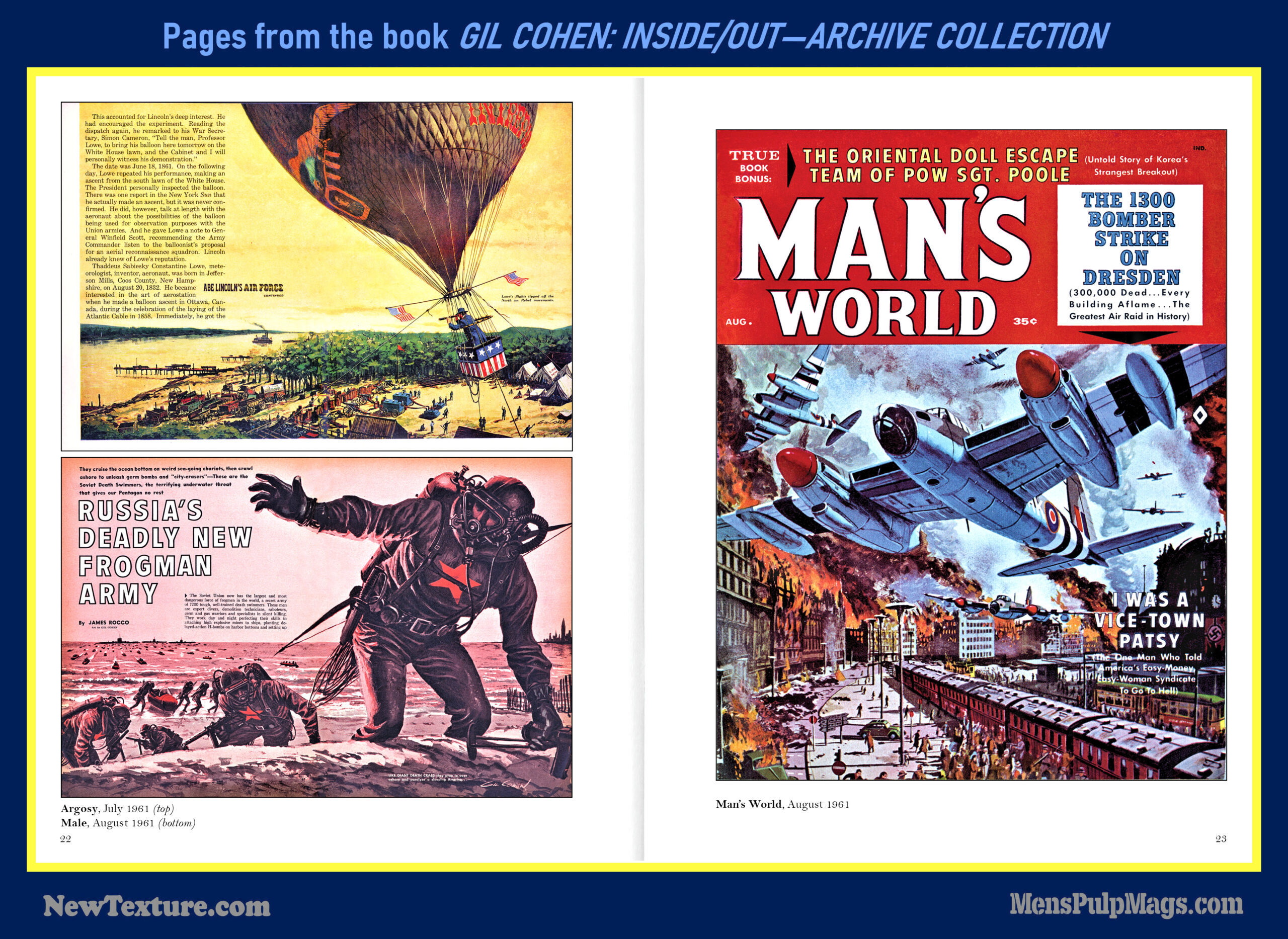 GIL COHEN: INSIDE/OUT—THE ARCHIVE COLLECTION, a deluxe, full-color hardcover, is the first book in a planned four-volume series that will showcase the classic men’s adventure magazine covers and interior illustrations created by artist Gil Cohen during the 1950s, 1960s, and 1970s.