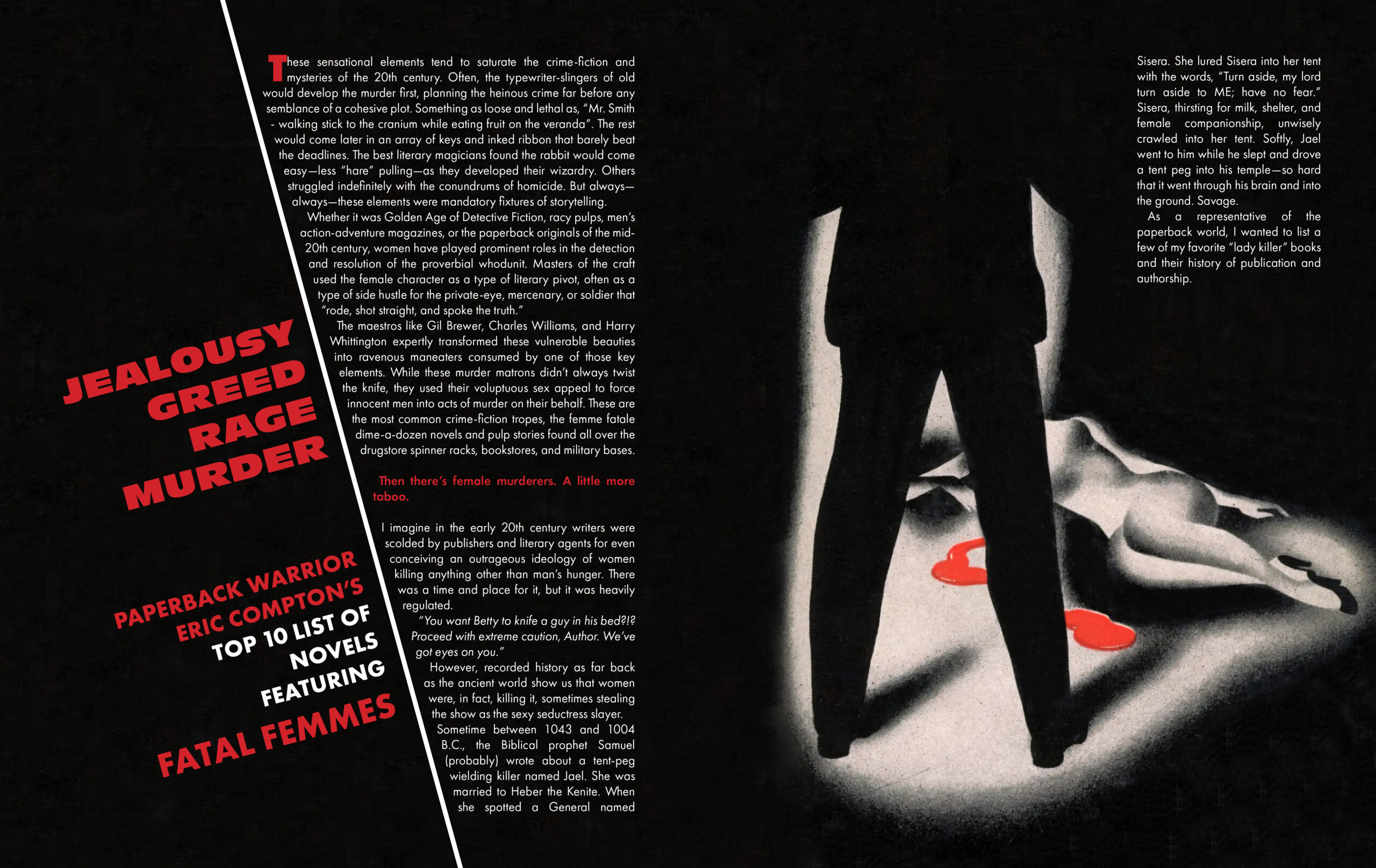 ● “Jealousy, Greed, Rage, Murder: The Top Ten Books Featuring Fatal Femmes” by Eric Compton