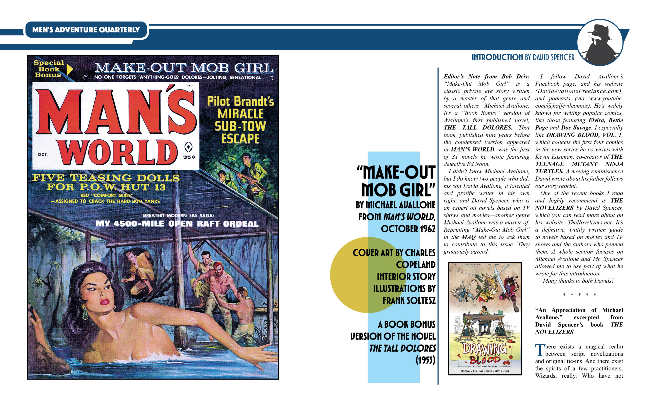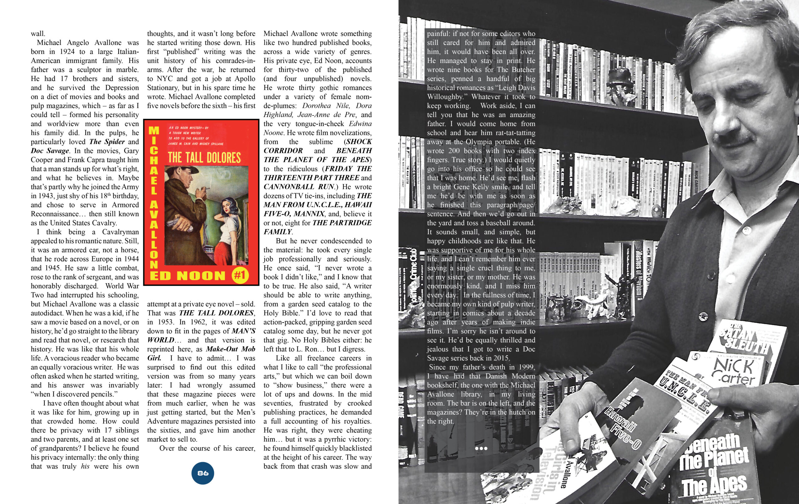 ● a “Book Bonus” version of the first “Ed Noon” novel by the great Michael Avallone, along with a special introduction about him by David Spencer, author of THE NOVELIZERS and a moving remembrance written by Michael’s son David (whose latest creation is the graphic novel series DRAWING BLOOD);