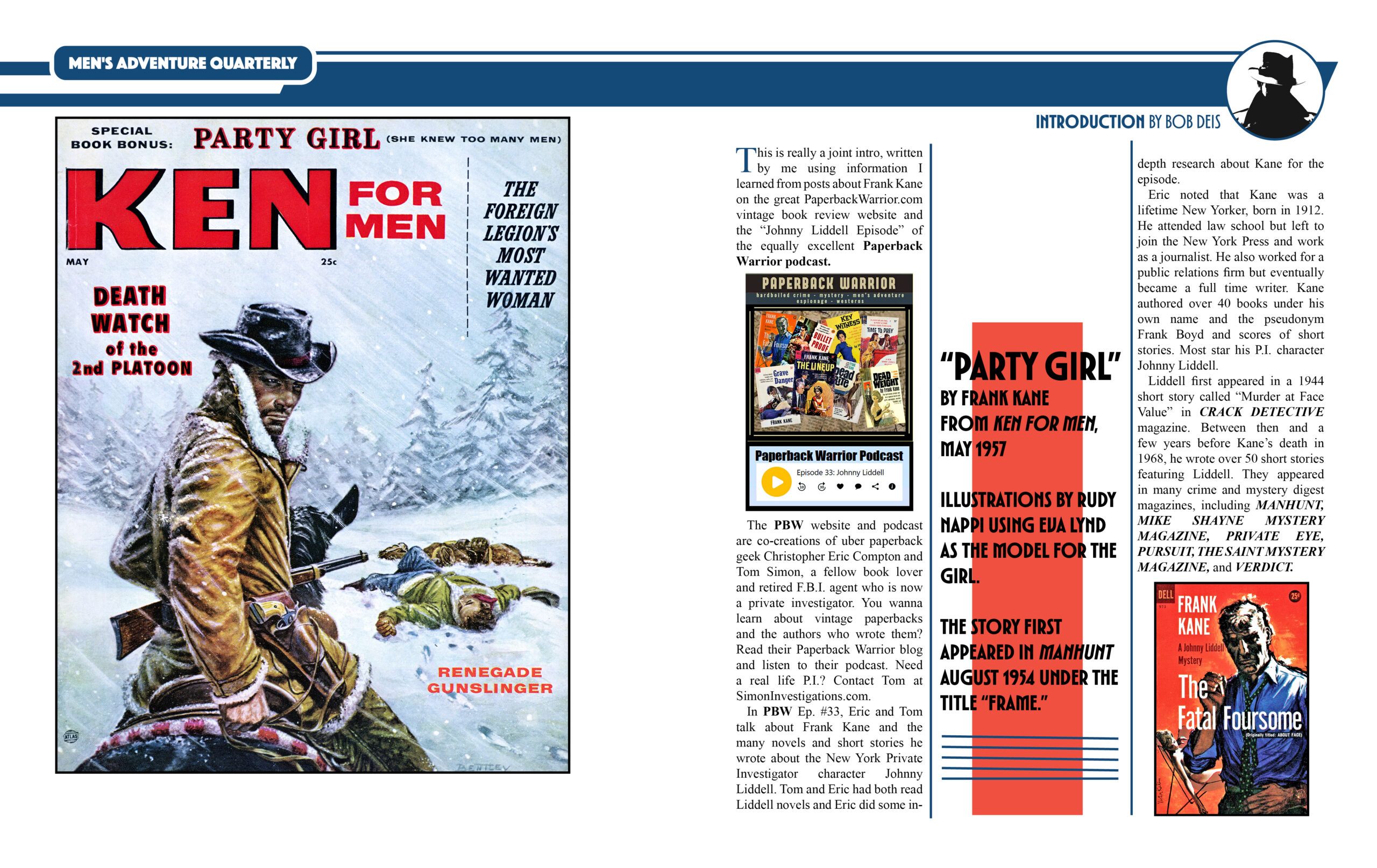● a “Johnny Liddell” story by noir mystery master Frank Kane;
