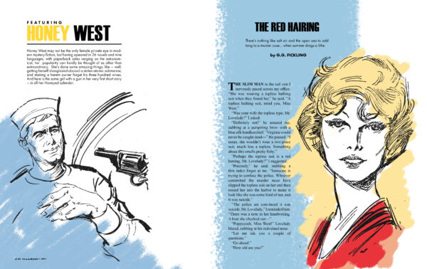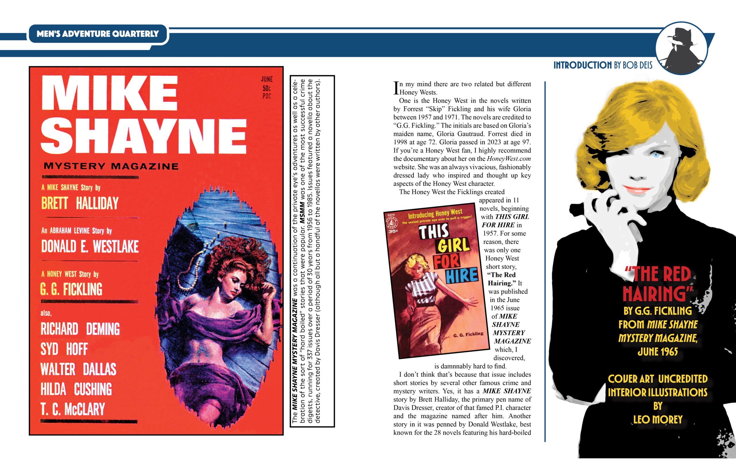 ● the only existing Honey West short story written by the creators of the novels about that famed female P.I. character, enhanced with MAQ co-editor Bill Cunningham’s in-depth article about the HONEY WEST television series and it’s alluring star, Anne Francis.