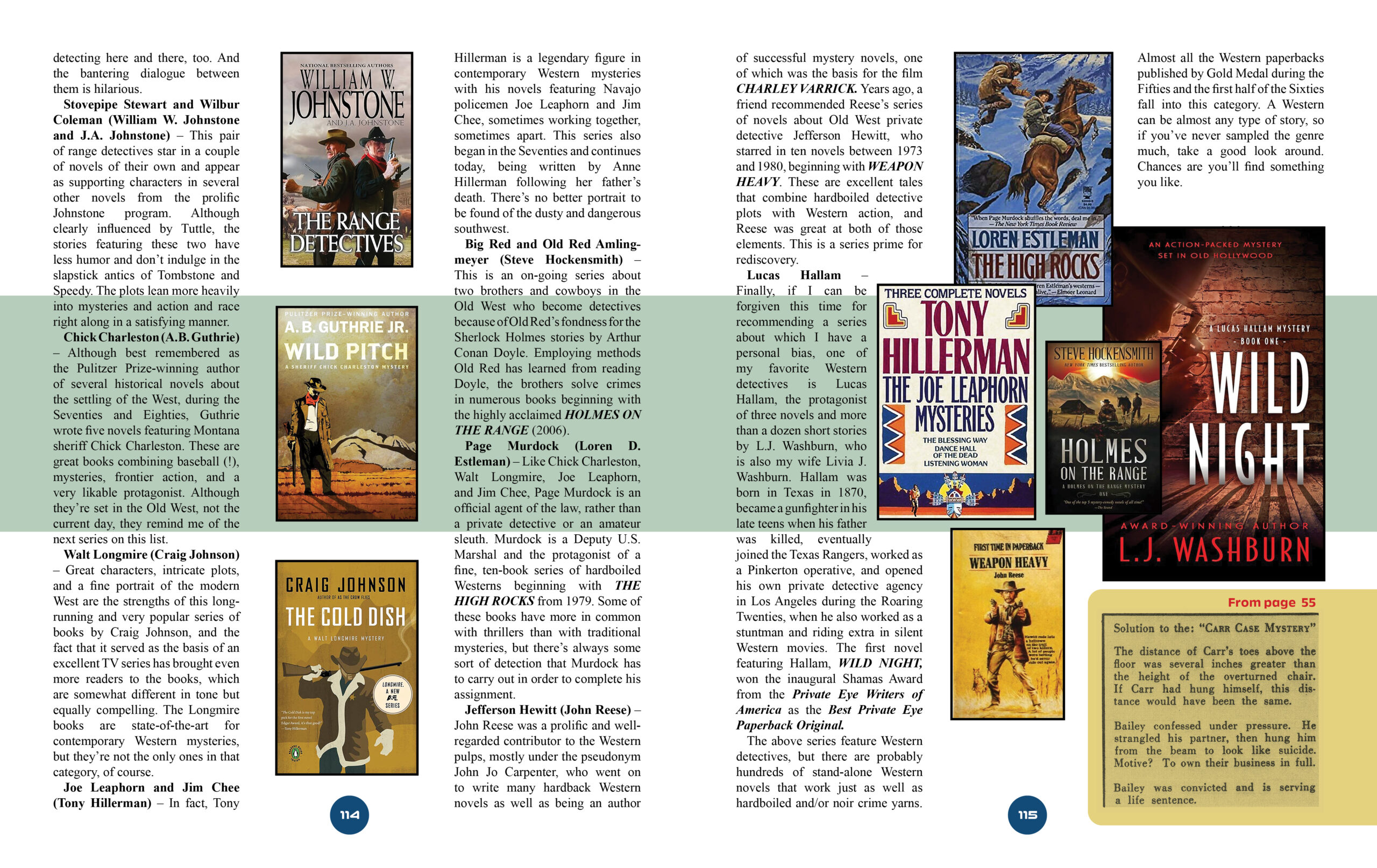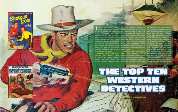 ● an article about Western novels featuring private eye characters contributed vy NEW YORK TIMES best-selling author James Reasoner (whose latest novel is CALIFORNIA POWDERSMOKE);