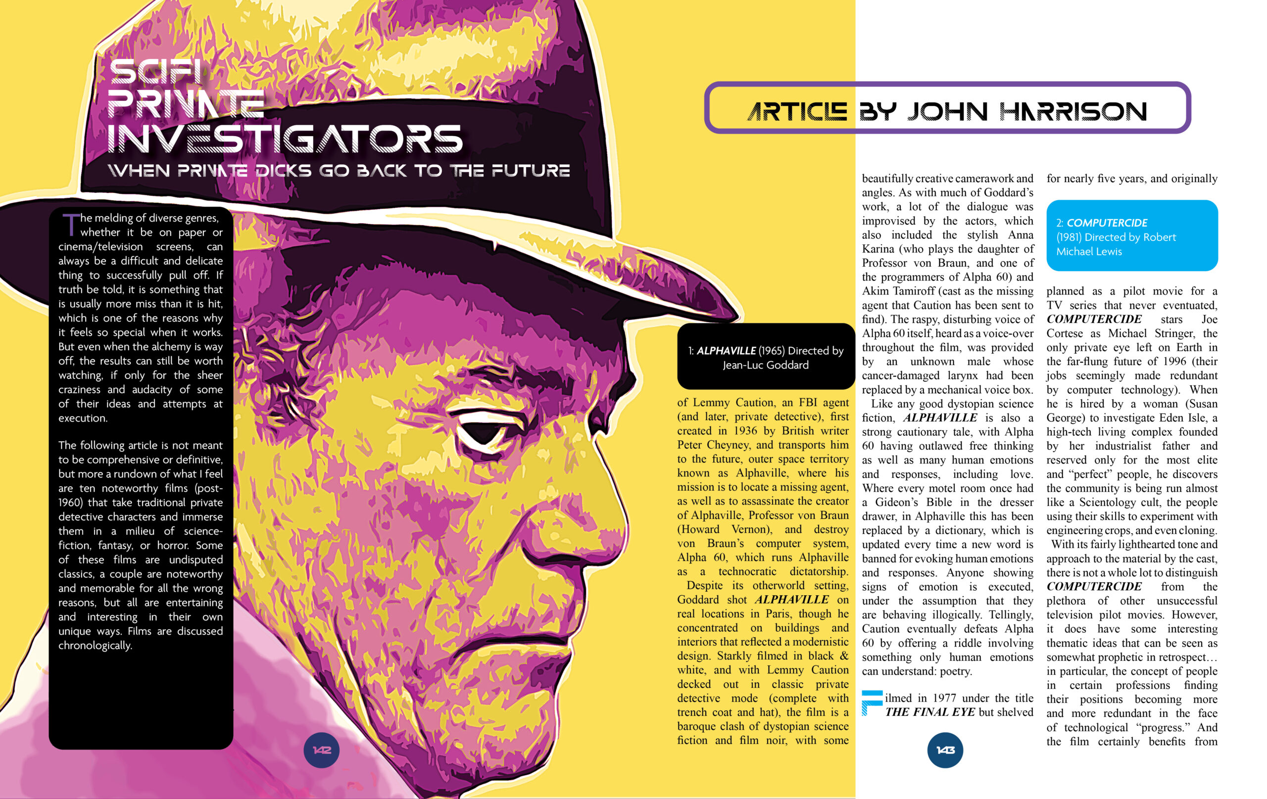 ● and, an article about 10 science fiction movies that feature private eye characters by movie maven John Harrison (whose “KISSploitation” book about the band KISS is a hot seller on Amazon).