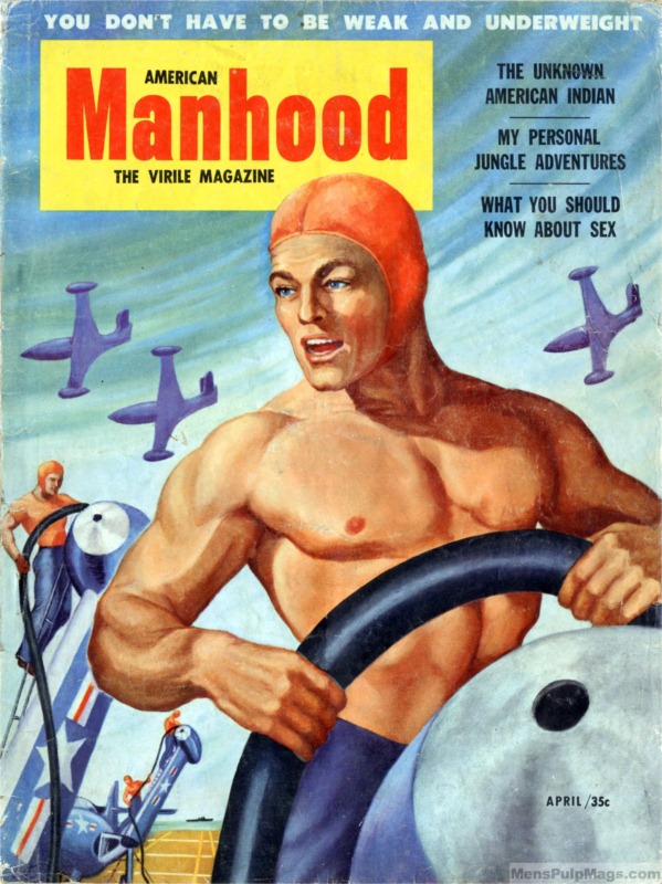 Initially, almost all I knew about Poulton was that he had done cover paintings for a few men’s adventure magazines in the 1950s, including as AMERICAN MANHOOD, MR. AMERICA and (I believe) MAN TO MAN.