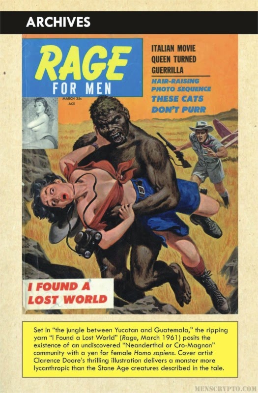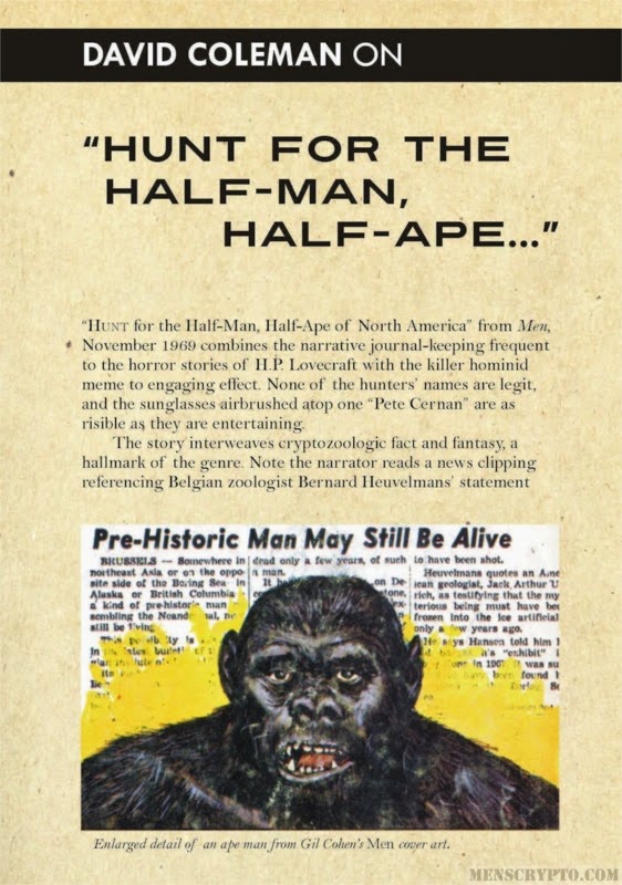 The Hominid cryptids stories we chose, like others in the book, either have historical significance in the realm of cryptozoology lore or are especially good men’s adventure magazine yarns, or both.