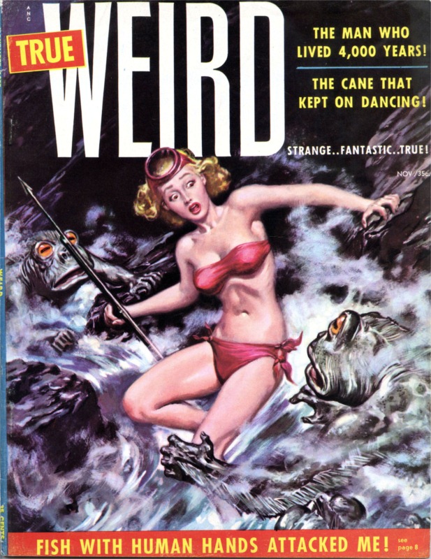 Next up is the November 1955 issue of TRUE WEIRD, an unusual men’s adventure magazine that primarily focused on stories about monsters, ghosts and the supernatural. The cover painting is by Clarence Doore.